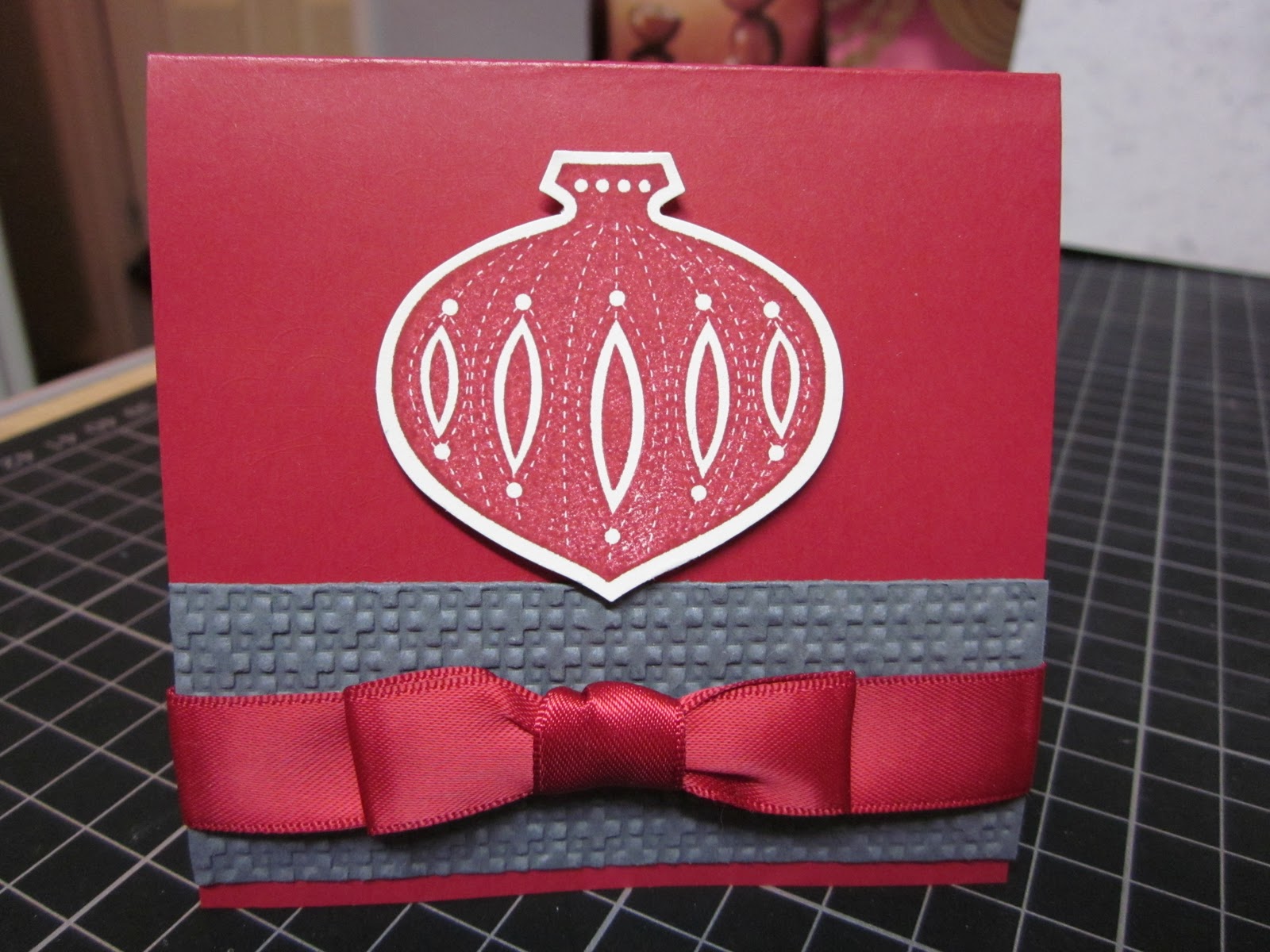 These ones used the same technique as navy ones....I used real red and crumb cake this time. The one sheet wonder is a fab way to make your own DSP and then cut to the size you want. Currently I am loving the real cute 3 x 3 cards esp as you can get 8 from 12 x 12 card......